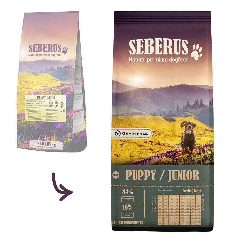 Seberus Puppy Junior è un alimento gustoso, a base di pollo essiccato e senza cereali, adatto per cuccioli fino a 1 anno di età. I vantaggi di questo prodotto: