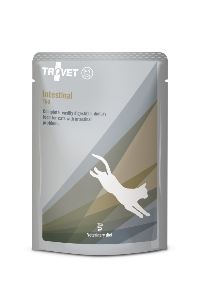Trovet Intestinal FRD è un pasto completo adatto all'uso quotidiano. Si raccomanda di consultare un veterinario prima di somministrare questo alimento.